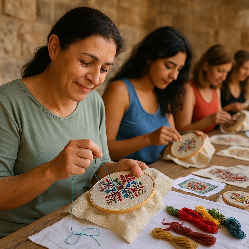 Learn about Lebanese embroidery heritage Guided practice with traditional stitches Design your own small pattern on fabric Take-home embroidered piece
